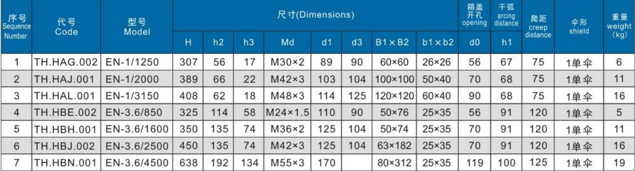 EN standard bushing outline dimensions (1~3kV/250~4500A)
